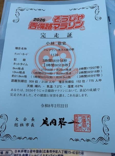 昨日、2026そうじゃ吉備路マラソンを走りました。